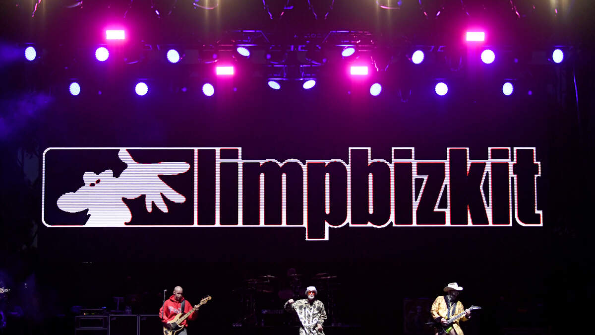 DANA POINT, CALIFORNIA - JUNE 08: (L-R) Sam Rivers, Fred Durst and Wes Borland of Limp Bizkit perform onstage at KROQ Weenie Roast & Luau at Doheny State Beach on June 08, 2019 in Dana Point, California. (Photo by Frazer Harrison/Getty Images for KROQ)