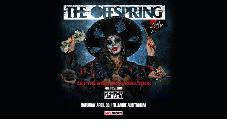 The Offspring Saturday, April 30, 2022 Fillmore Auditorium Doors: 7pm | Show: 8pm Ages: 16+ >>TICKETS