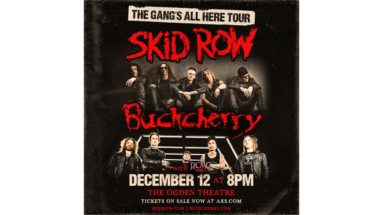 Skid Row & Buckcherry The Gang's All Here Tour with Rock City Machine Co Tuesday, December 12, 2023 Ogden Theatre Ages: 16+ Doors: 7pm | Show: 8pm >>TICKETS Presale: Thursday, 04.27.23 @ 10AM-10PM Password: SRBC23 On sale: Friday, 04.28.23 @ 10AM