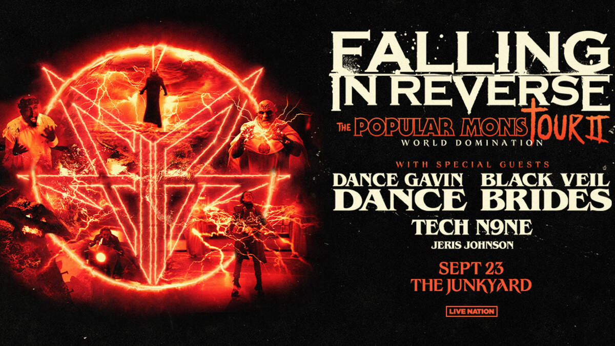 Falling In Reverse The Popular MonsTOUR II: World Domination with Dance Gavin Dance, Black Veil Brides, Tech N9ne, Jeris Johnson Monday, September 23, 2024 The JunkYard >>TICKETS
