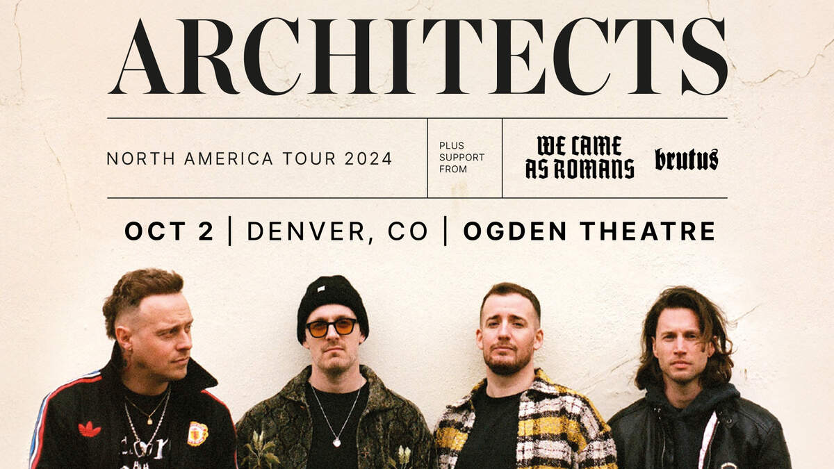Architects North America Tour 2024 We Came As Romans, Brutus Wednesday, October 2, 2024 .Ogden Theatre Ages: 16+ Doors: 6p | Show: 7p >>TICKETS