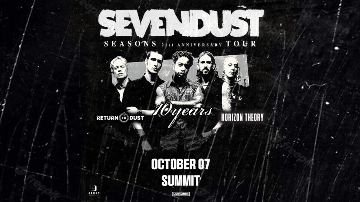 Sevendust Seasons 21st Anniversary Tour with 10 Years, Return to Dust and Horizon Theory Summit Monday, October 7, 2024 Doors: 5:30p | Show: 6:30p >>TICKETS