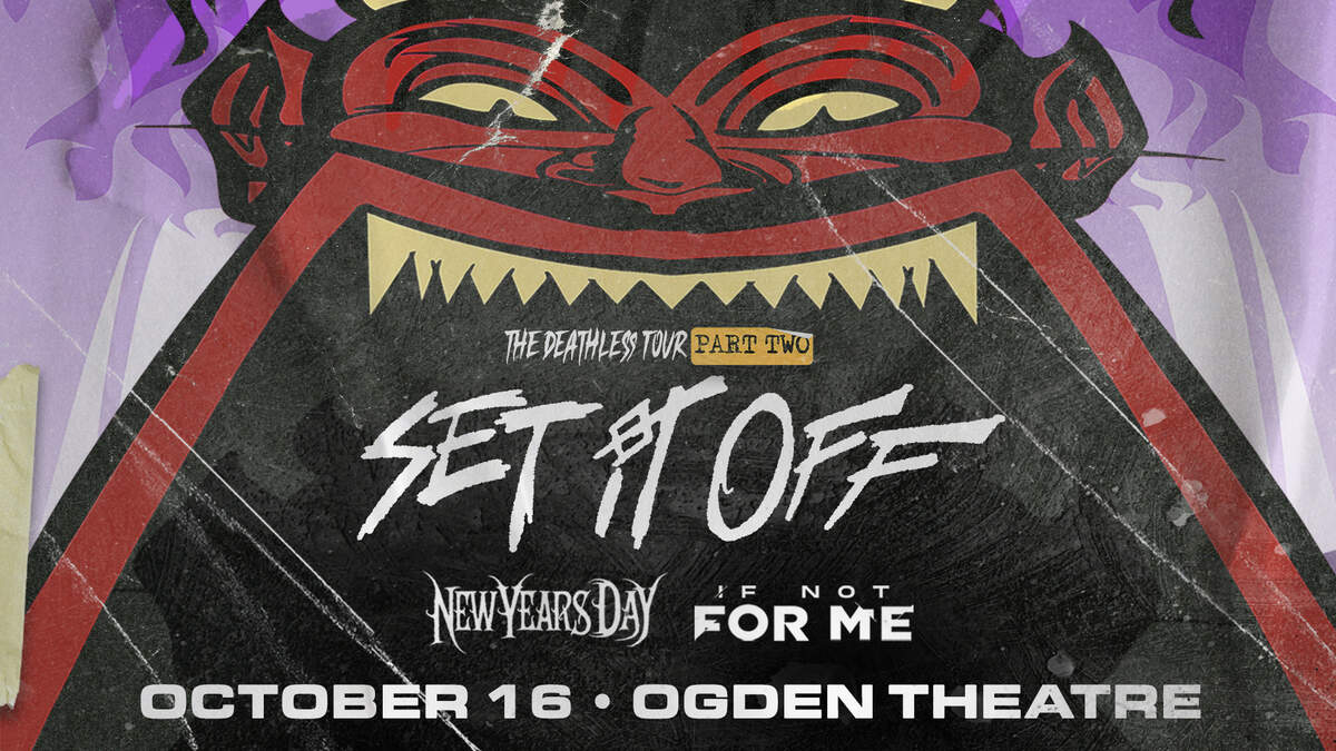 Set It Off The Deathless Tour Part 2 New Years Day, If Not For Me Ogden Theatre Wednesday, October 16, 2024 Ages: 16+ Doors: 5p | Show: 6p >>TICKETS