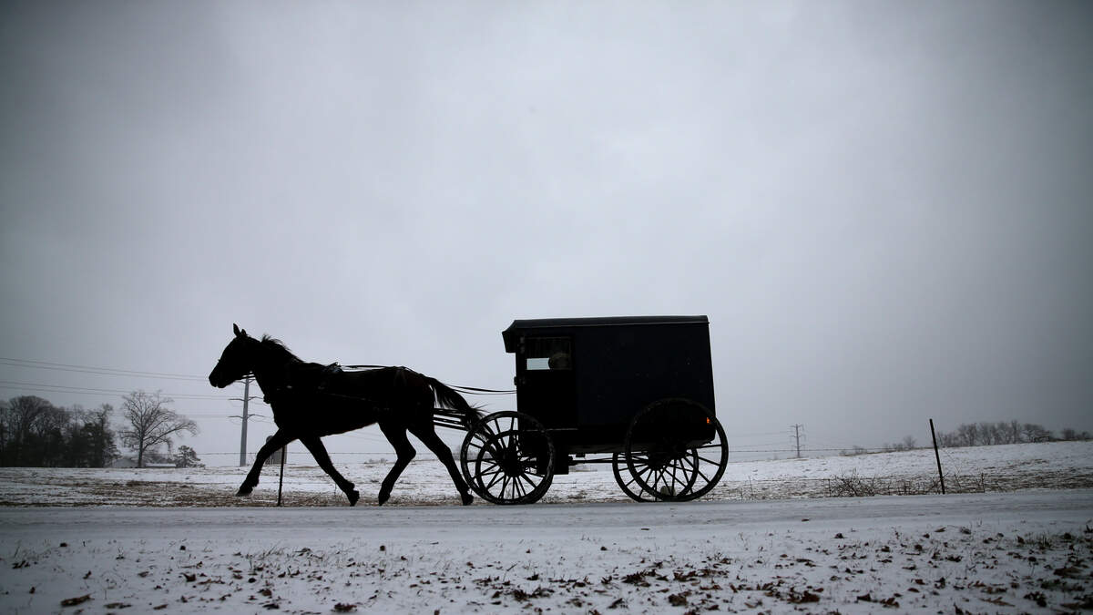 MECHANICSVILLE, MD - JANUARY 21: A horse pulls an Amish buggy during a snowfall January 21, 2014 in Mechanicsville, Maryland. A strong winter storm is bearing down on the East Coast between Virginia and Massachusetts and could dump four to eight inches of snow on the Washington area. (Photo by Mark Wilson/Getty Images)