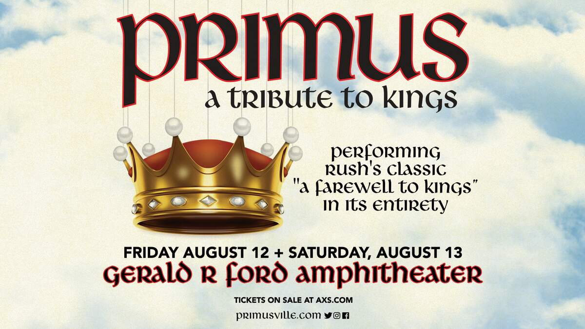 Primus Friday, August 12, 2022 >>TICKETS Saturday, August 13, 2022 >>TICKETS Gerald R Ford Amphitheater Gates: 7pm | Show 8pm