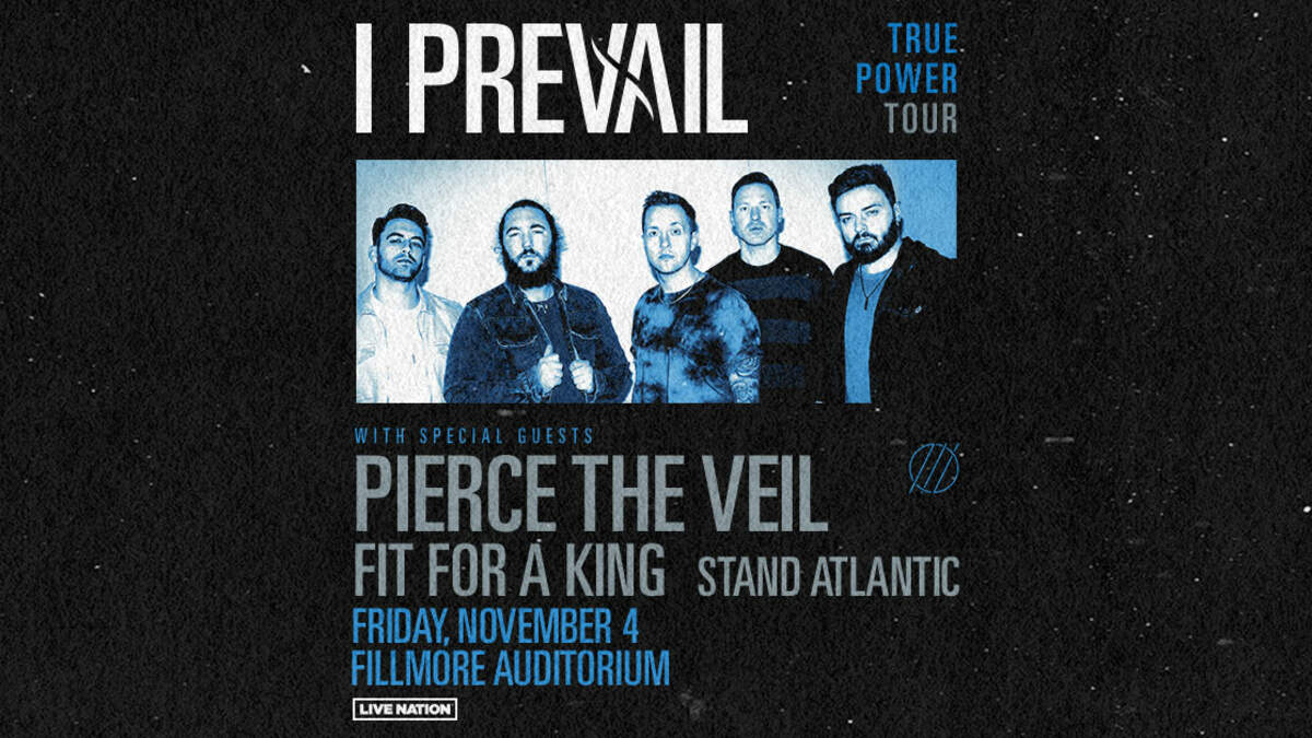 I Prevail w/ Pierce The Veil, Fit For A King, Stand Atlantic Friday, November 4, 2022 Fillmore Auditorium Doors: 6pm | Show: 7pm Ages: 16+ >>TICKETS